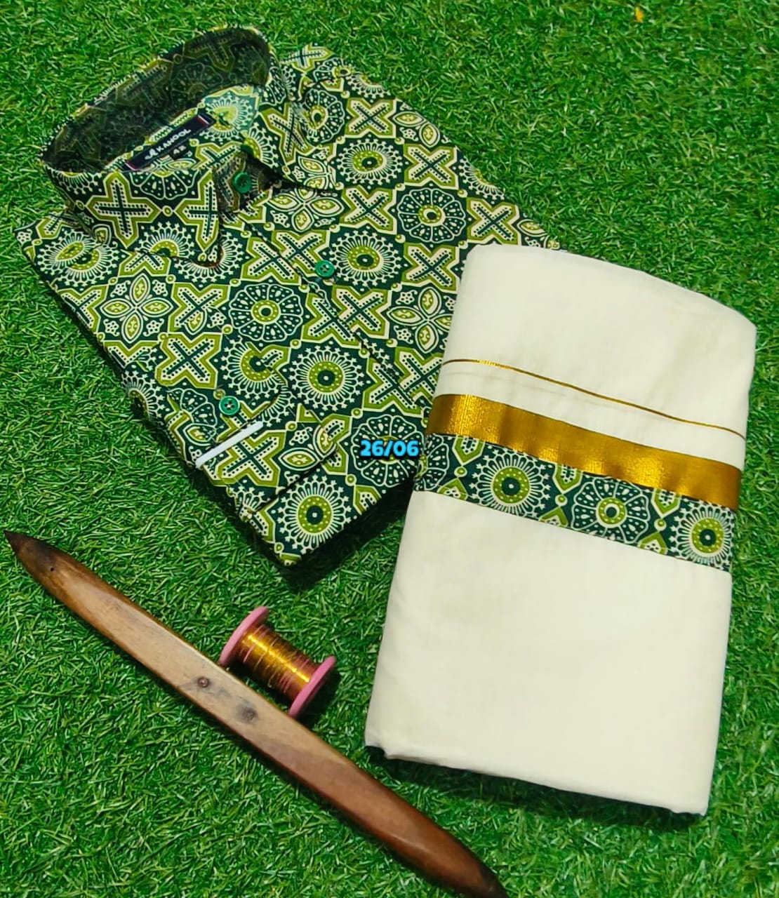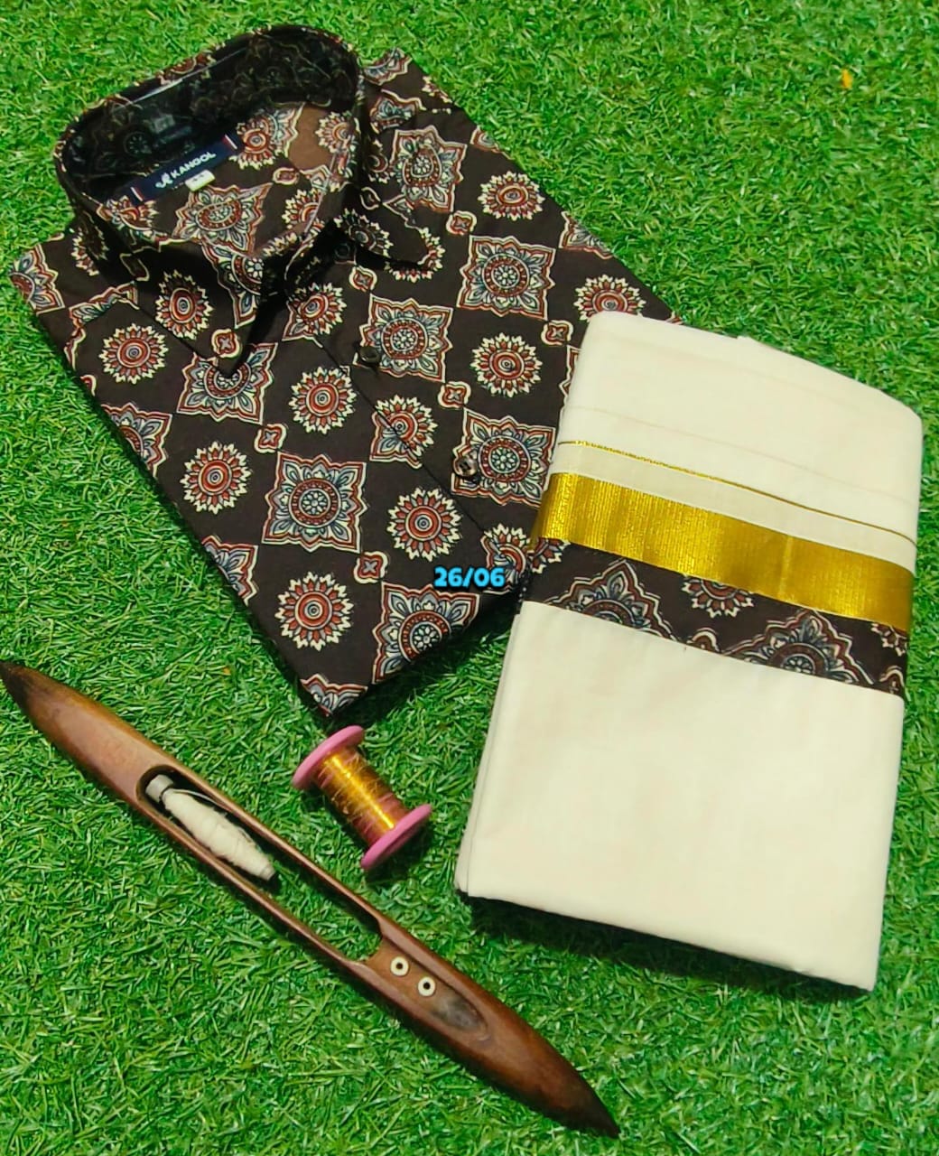 MEN AJRAK SHIRT AND MATCHING MUNDU COMBO